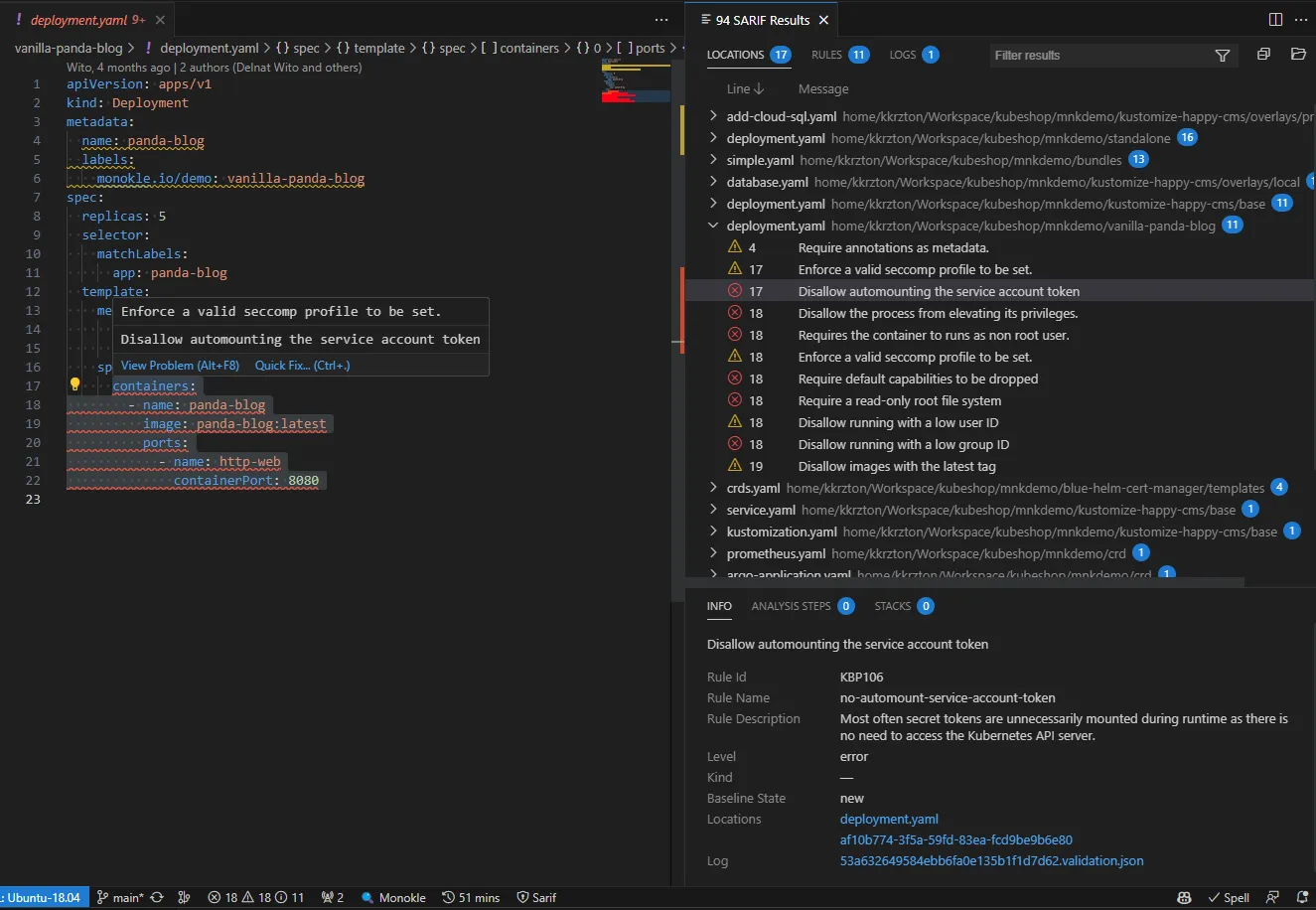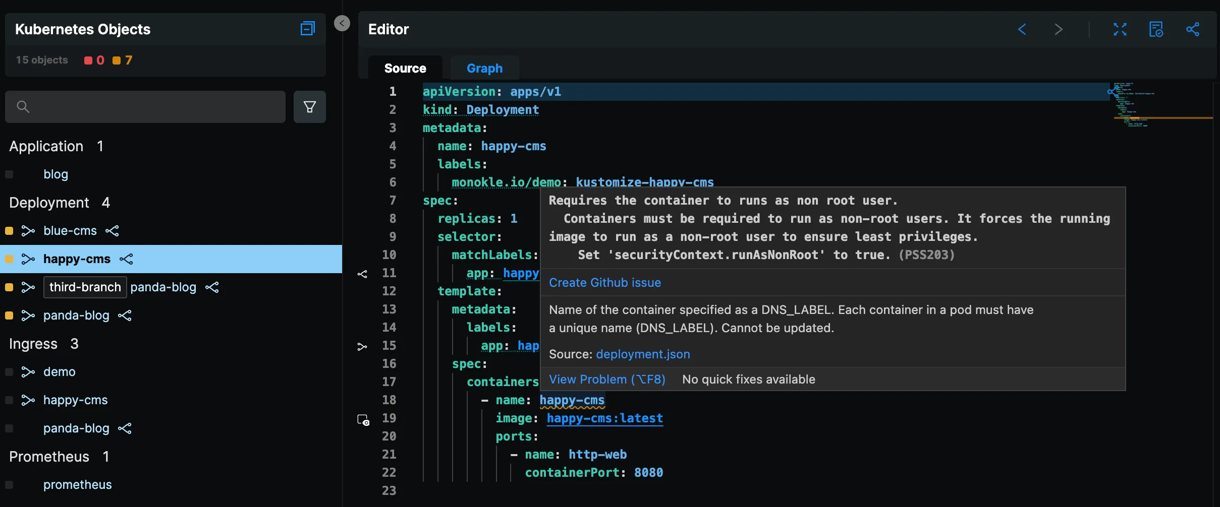 Monokle uses the same security and performance policies as the popular Trivvy tool